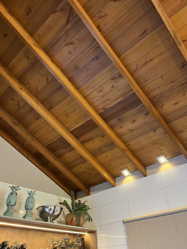 Os forros de madeira, além de elegantes, oferecem excelente durabilidade e podem ser utilizados tanto em áreas internas quanto externas. Um dos seus maiores diferenciais está no isolamento térmico natural: no verão, o ambiente se mantém mais fresco; no inverno, mais aquecido e acolhedor.